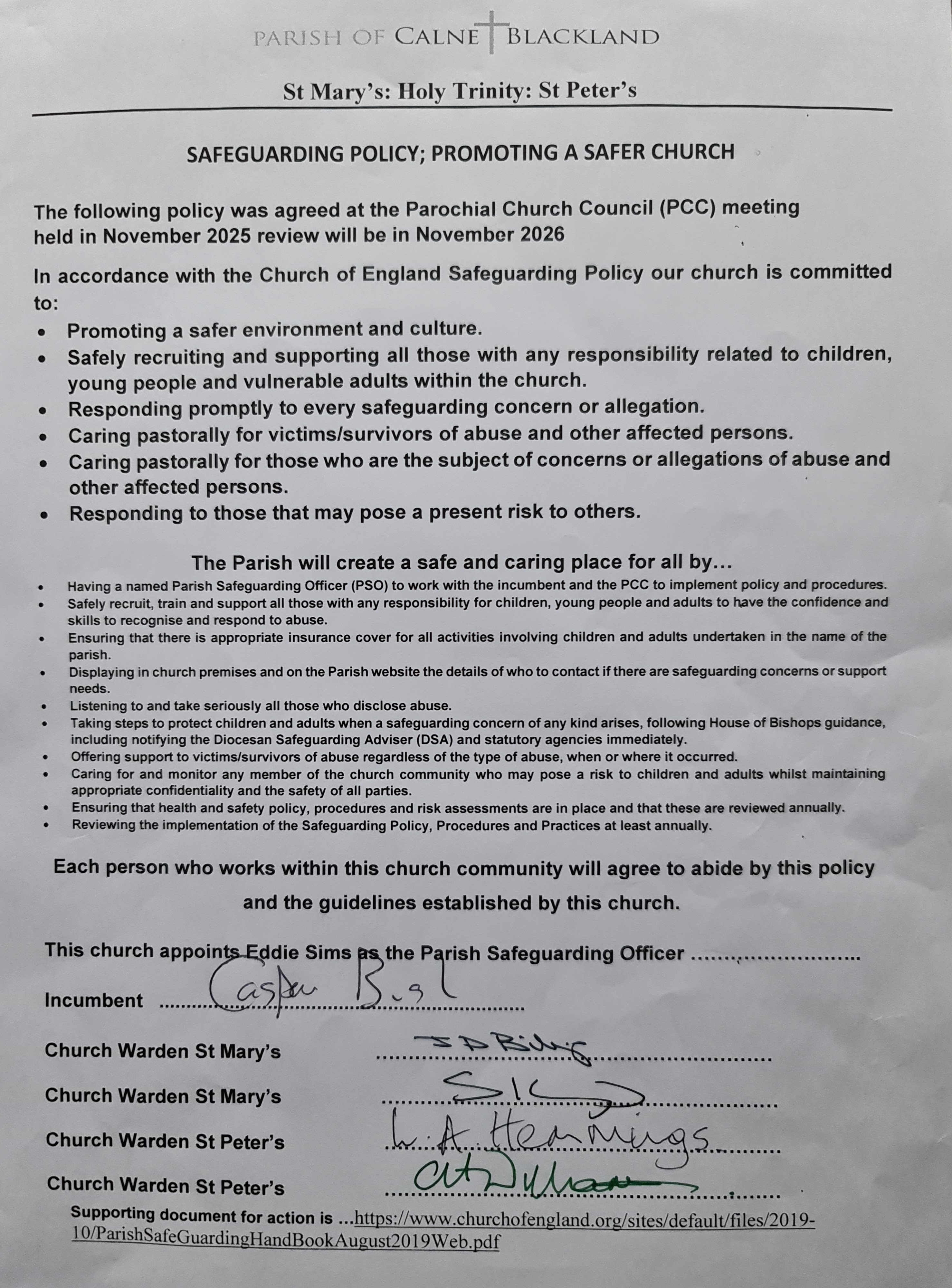 The Parish Safeguarding Policies for each parish are available in the respective parish churches, from The Team Office, Church St Calne or via the links below.